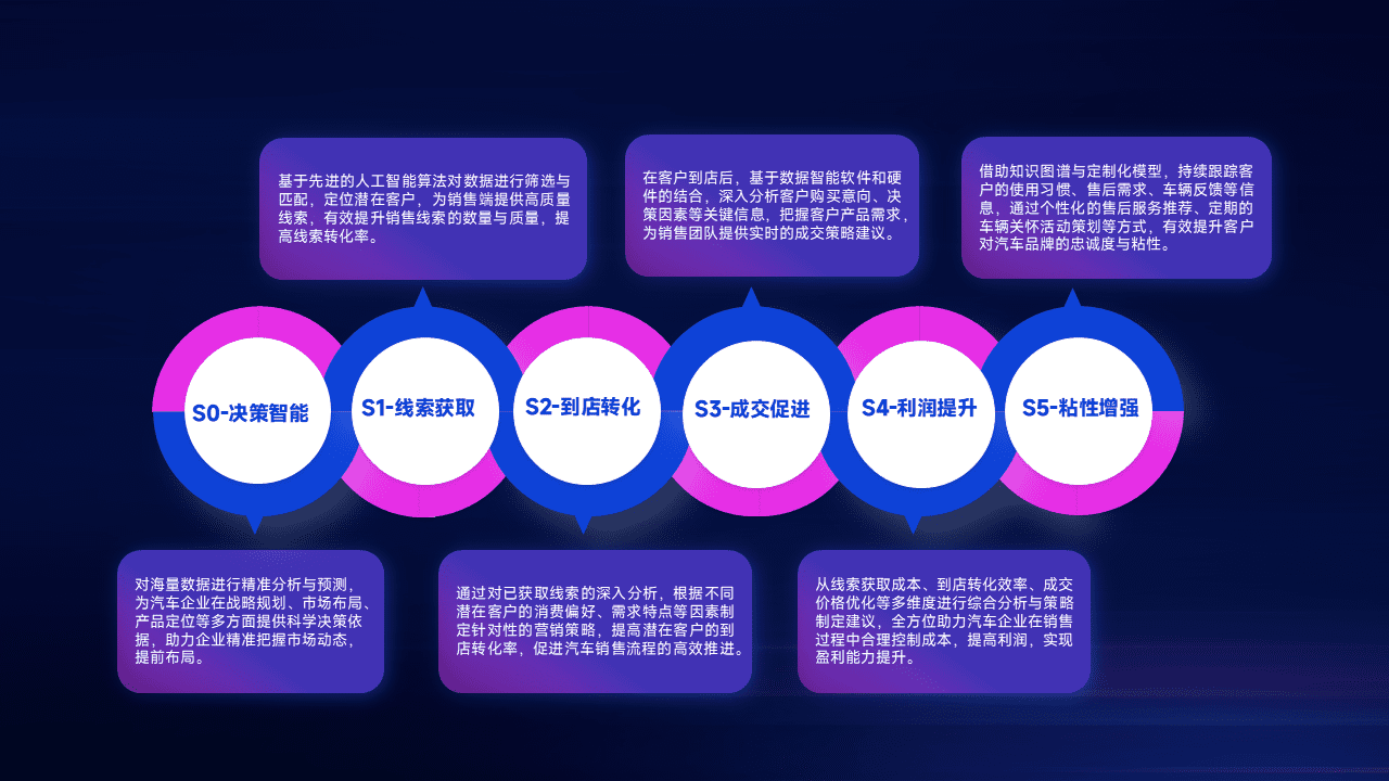 通过拓宽潜在客户来源、、、优化线索分配并提高到店转化率,,,以增强销售效率。。同时,,,,利用线索数据不断优化分析模型,,,,有效提升转化率,,,,扩大营销影响力。。。